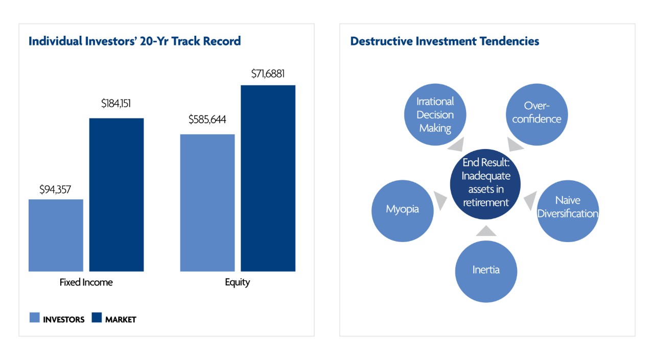 The overriding reasons behind investor's underperformance are behavioral biases that cause them to act on emotion and deep-seated misperceptions about investment risk.